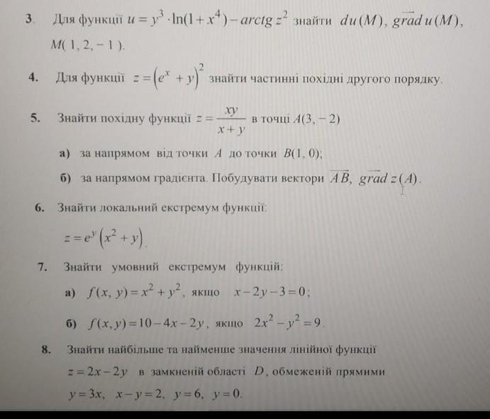 5. z’=(yx/(x+y))’=y²/(x²+2yx+y²), A(3;-2); z’(A)=(-2)²/(3²+2*(-2)*3+(-2)²)=4;