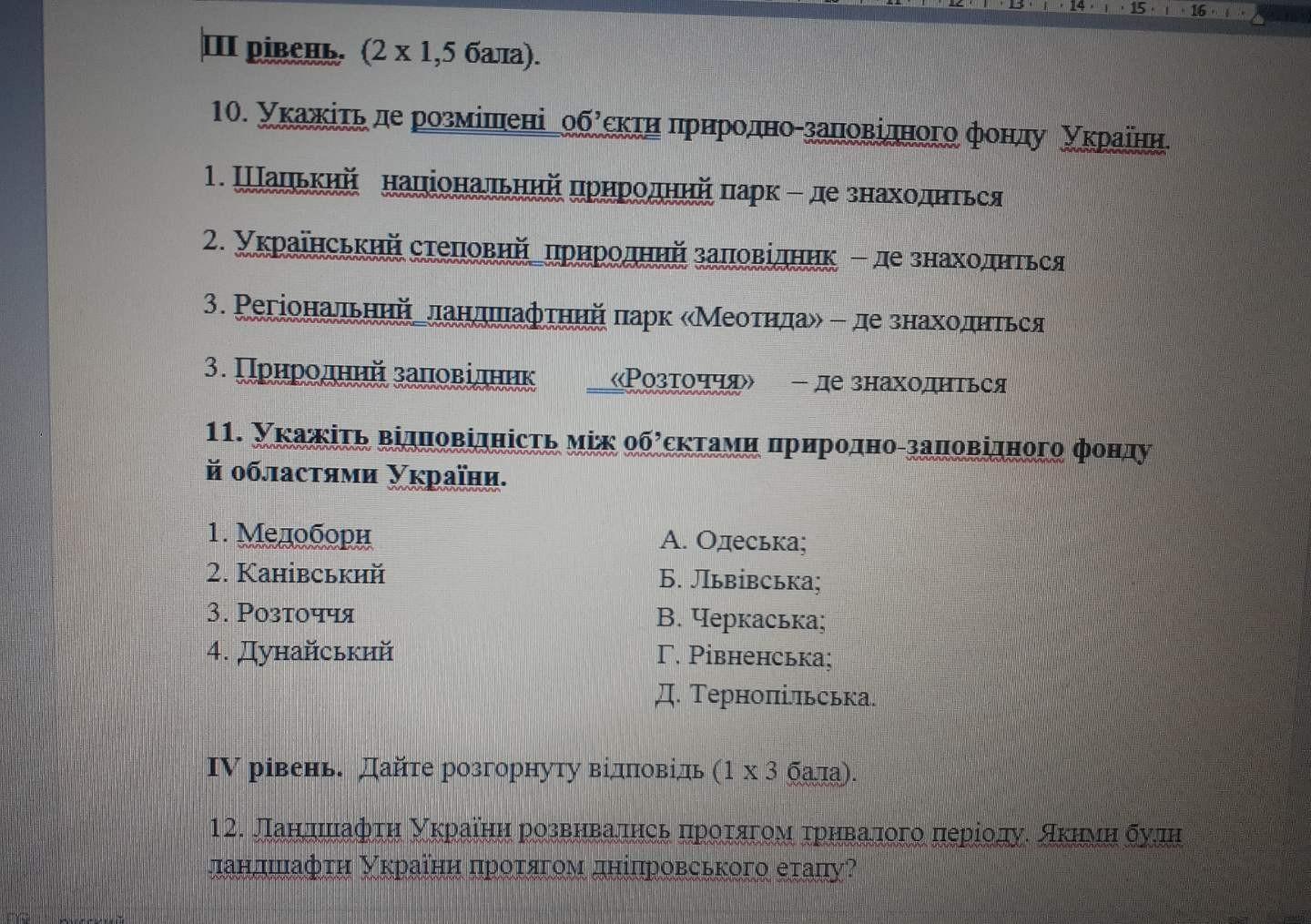 10- 1)Шацький Національний парк знаходится у Волинській Області.
