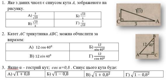 1) синус це відношення протилежного кута до гіпотенузи
