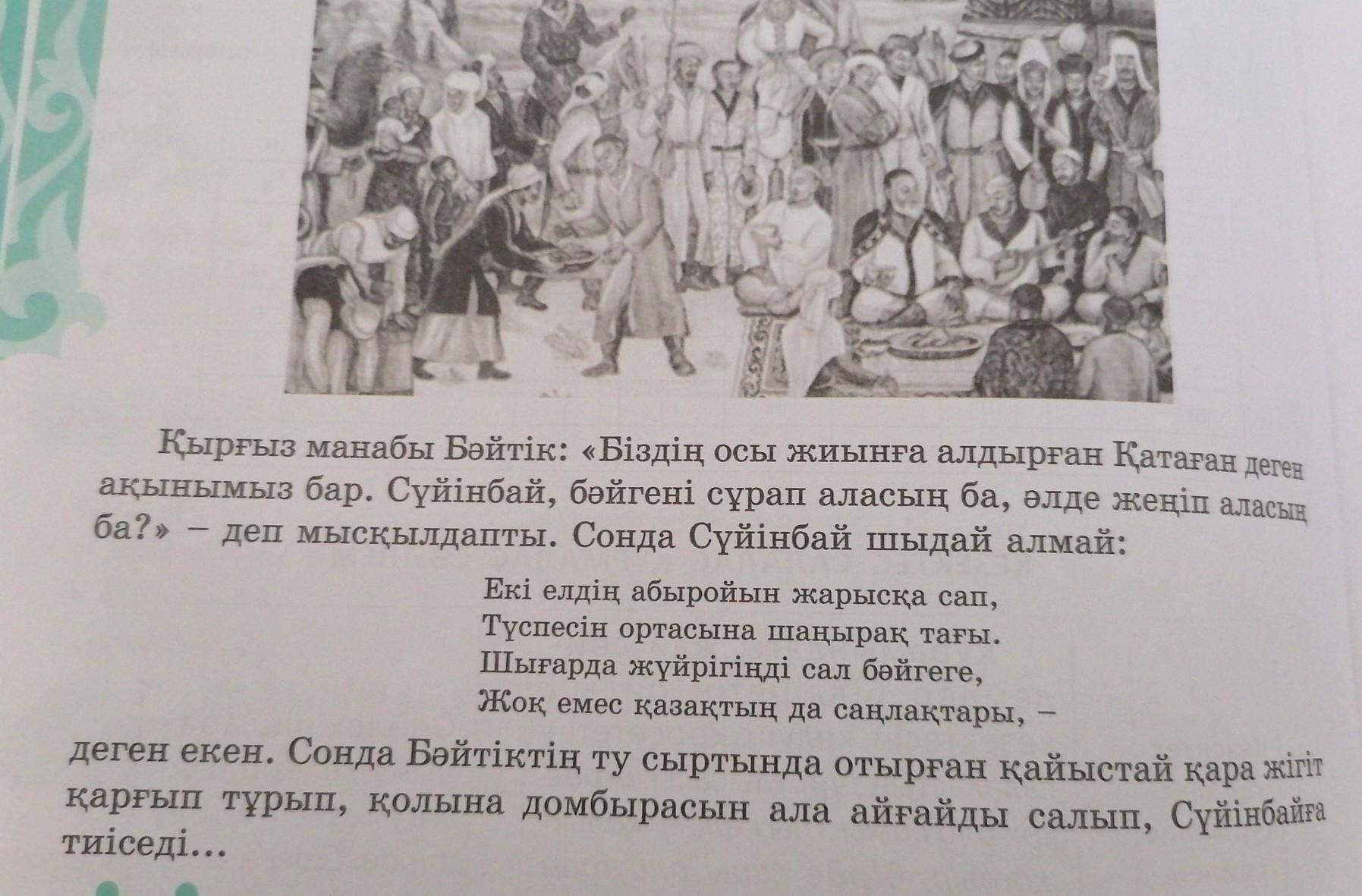 Это бред лол, тут Суйенбай участвует в айтысе(битва поэтов) против Каратана. Про баян и любовь слова не было