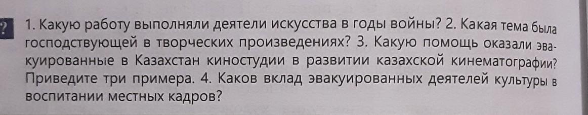 Помогите плз история казахстана "Культура Казахской ССР в период Великой Отечественной войны" ПЖ ПЖ ПЖ