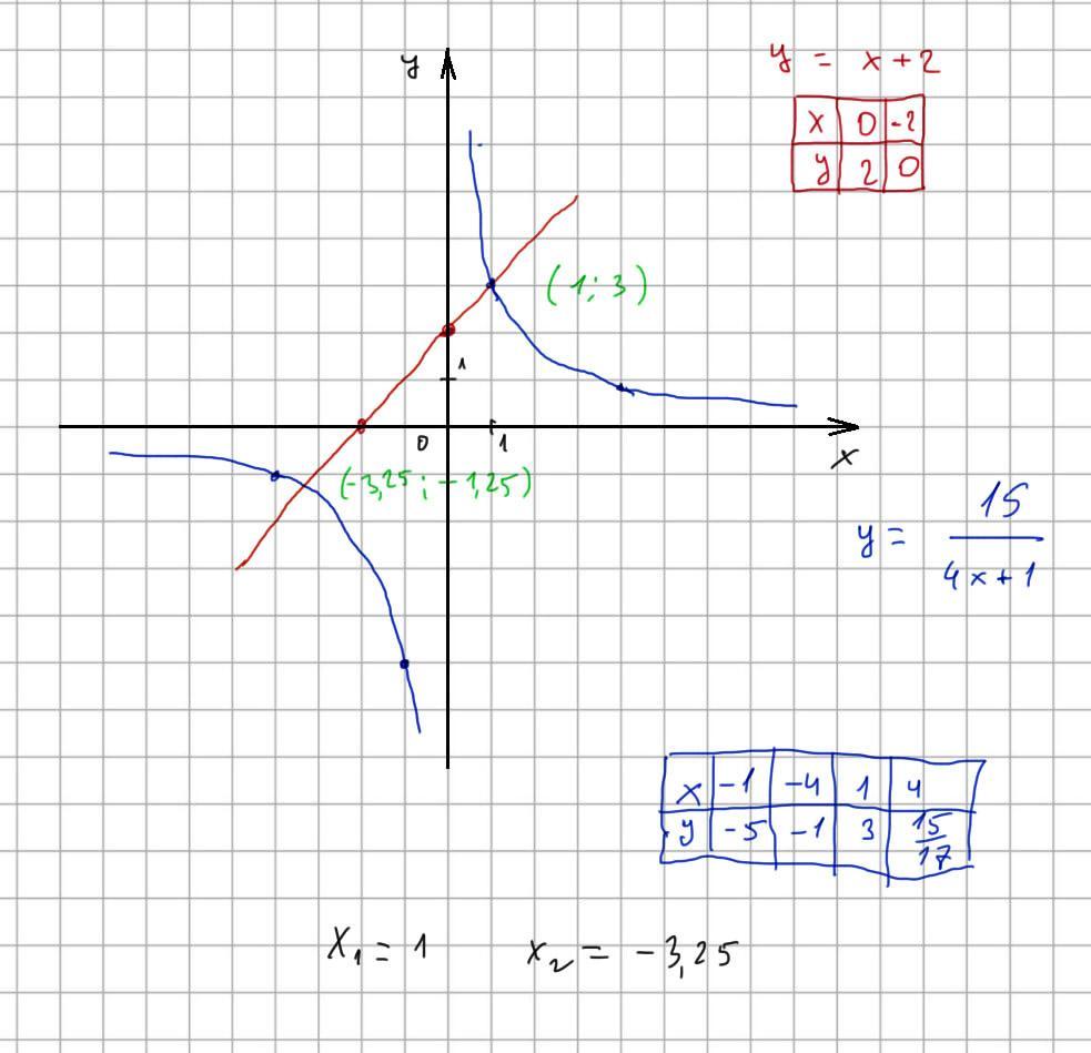 у=х+2 и у=15/4х+1