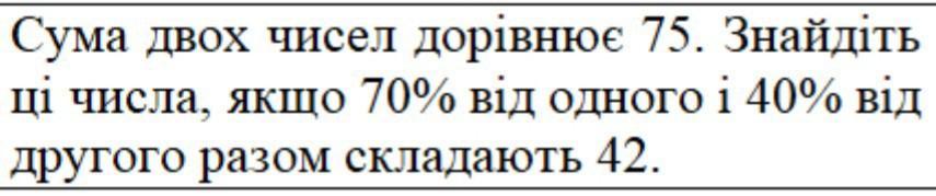 Рівняння : 0,7х + 0,4( 70 - х ) = 42 ;