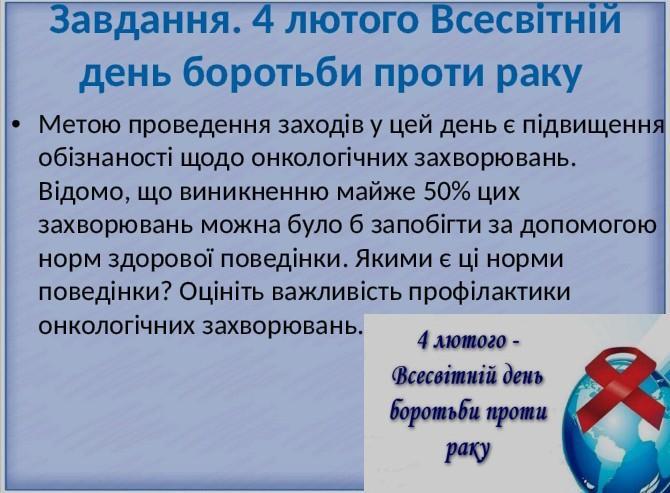 Завдання. 4 лютого Всесвітній день боротьби проти раку