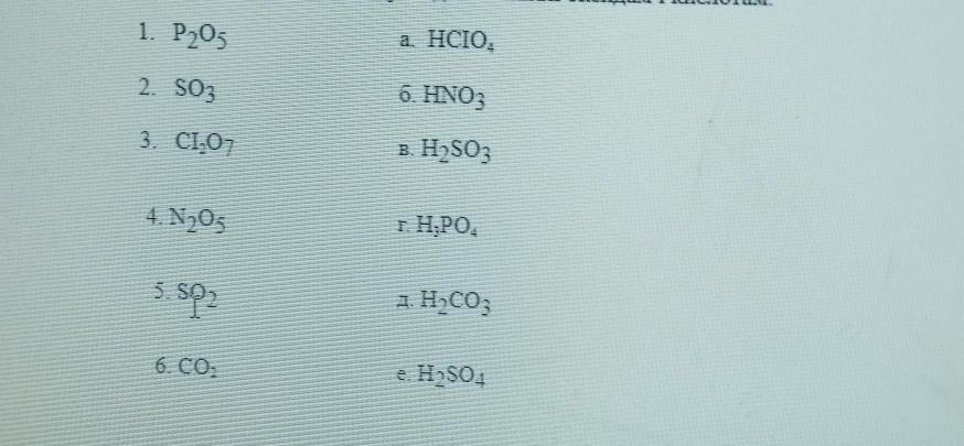 Установіть відповідність між оксидом та вiдповiдним йому гідратом, запишіть рівняння реакції утворення гідрату з оксиду та дайте назви оксидам і кислотам