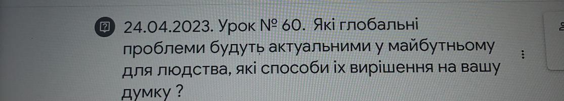 Ответ:У майбутньому, людство буде стикатись з глобальними проблемами, такими як зміна клімату, енергетичні проблеми, зміна демографії, кібербезпека та біотехнології. Для того, щоб їх вирішити, нам потрібно змінити спосіб виробництва та споживання енергії, підтримувати соціальну інтеграцію та забезпечувати безпеку в Інтернеті. Також важливо етично використовувати нові біотехнології, щоб уникнути негативних наслідків