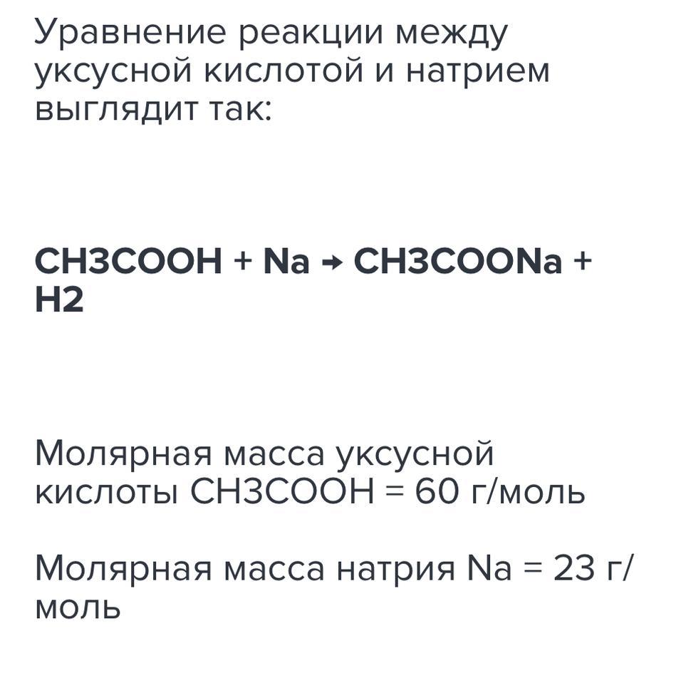 Молярная масса уксусной кислоты СН3СООН = 60 г/моль