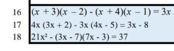 16) (x+3)(x-2)-(x+4)(x-1)=3x