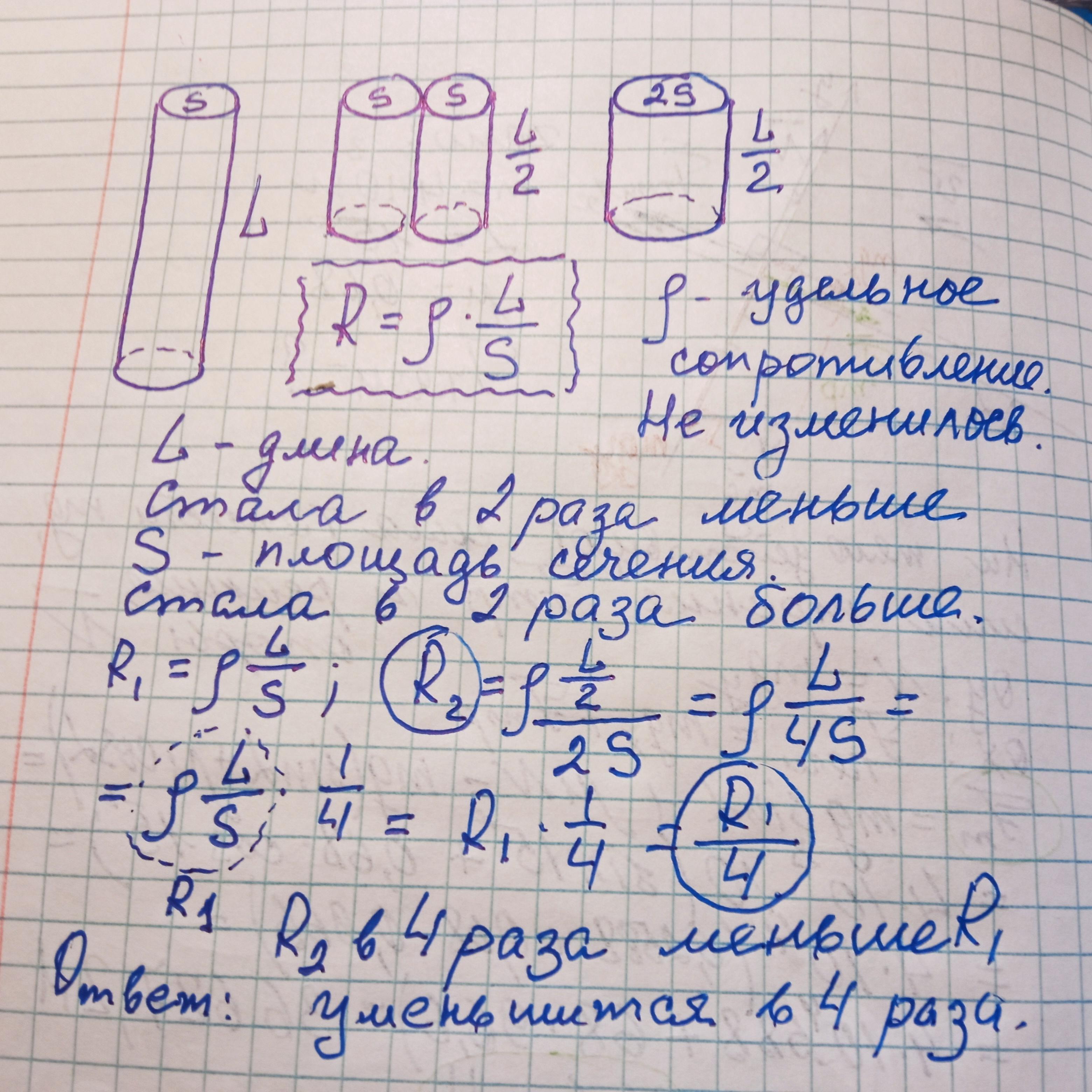 Провідник розрізали навпіл та отримали частини з'єднали паралельно. Як зміниться при цьому опір отриманої ділянки кола?