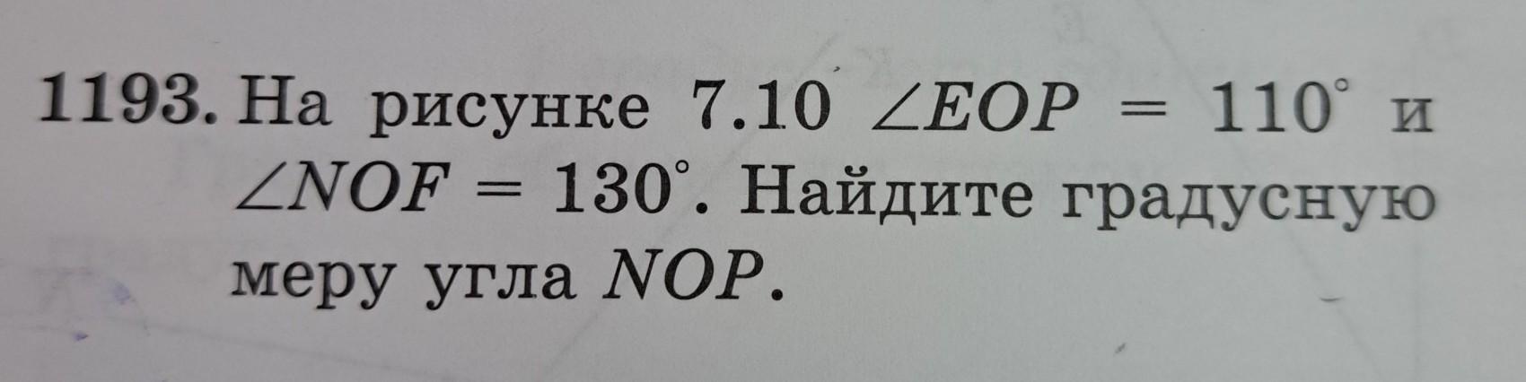 1193. На рисунке 7.10 ZEOP = 110° и ZNOF = 130°. Найдите градусную меру угла NOP. Pne. 7.9 на Д