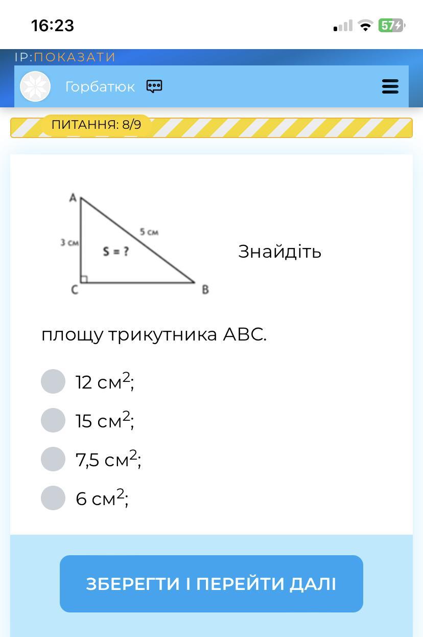 S= 1/2 × 4×3= 1/2×12= 6(см²)