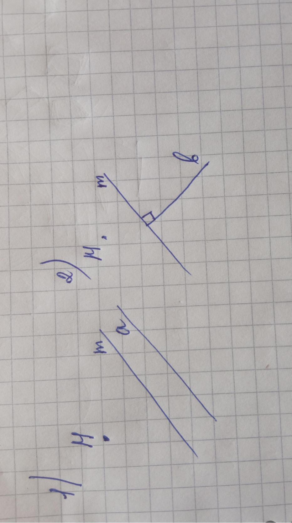Перерисуйте в зошит рисунок 37. Проведіть через точку М: 1) пряму а, паралельну прямій м 2) пряму ь, перпендикулярну до прямої м. M m