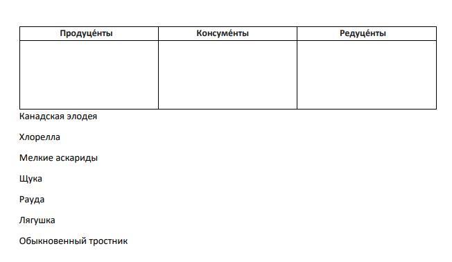 продуценты: канадская элодея, хлорелла и обыкновенный тростник