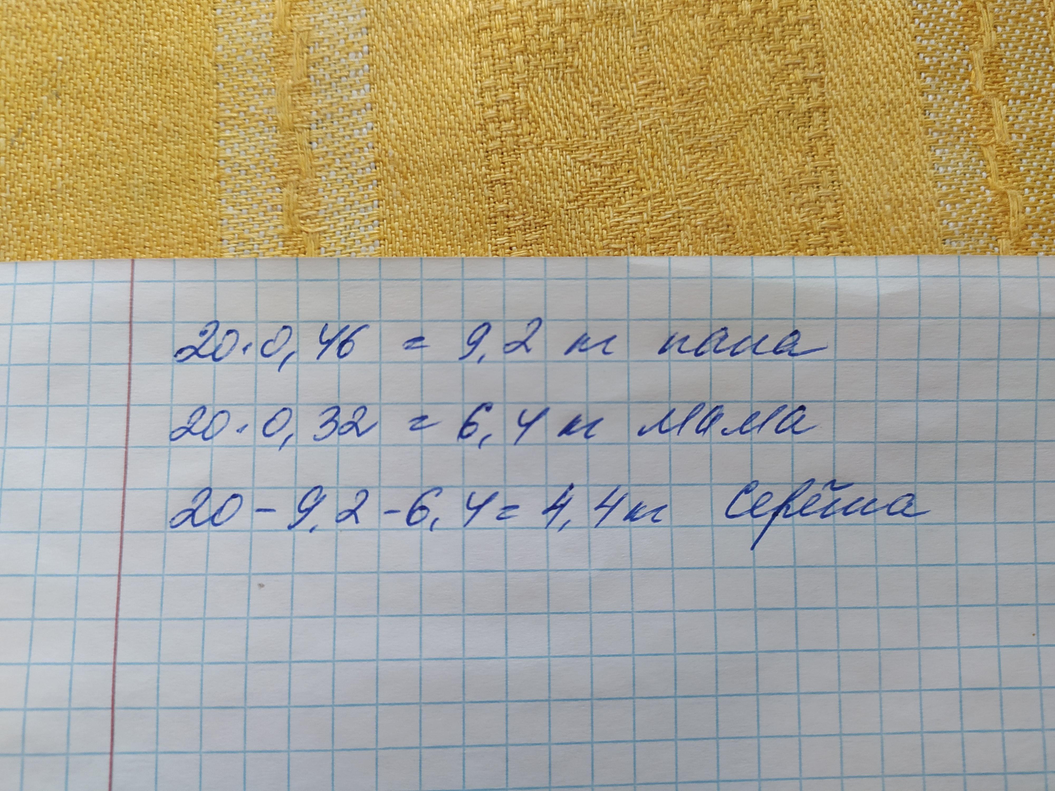 Сергійко з татом та мамою назбирали 20 кг гриби. Тато зібрав 46% грибів,