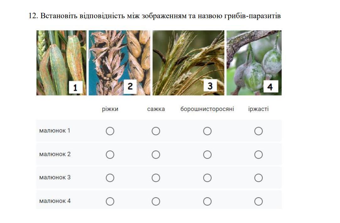 12. Встановіть відповідність між зображенням та назвою грибів-паразитів хелпппппппп пж все на фото!!!!!!!!!!!!!!!!!!!!!!!!!!