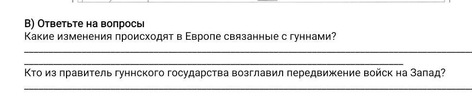 В) Ответьте на вопросы Какие изменения происходят в Европе связанные с гуннами? Кто из правитель гуннского государства возглавил передвижение войск на Запад?