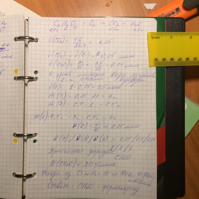 1.) При сжигании 7,5г органического вещества получили 4,5г воды и 5,6л углекислого газа.