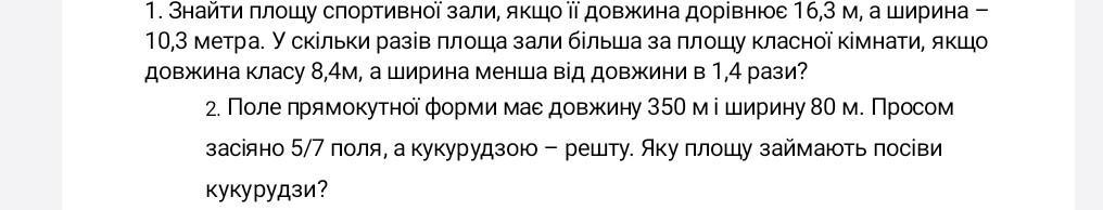 Відповідь, Площа залу більша в 3,3 рази за площу класу