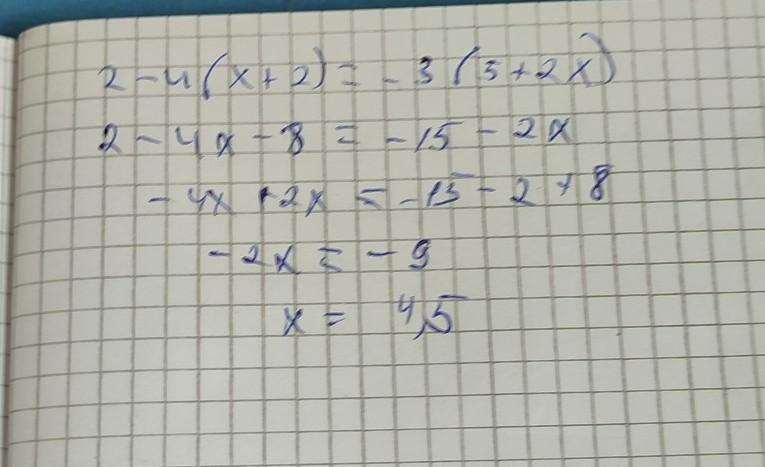 2-4(х+2) = -3(5+2х)