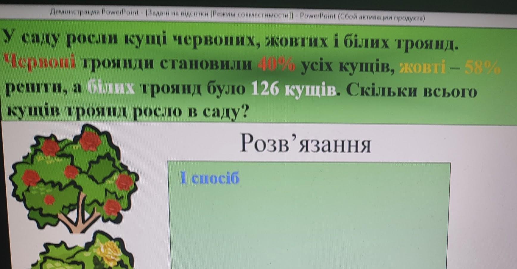 Ответ: 100-40=60(%) - жовті і білі троянди