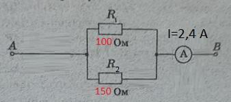 U ? U=I*R=I*1/(1/R₁+1/R₂)=2,4*1/(1/100+1/150)=144 B;
