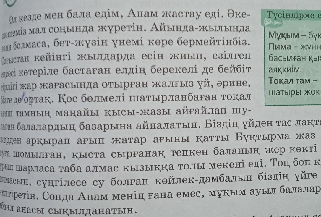 3-тапсырма. Мәтіннен төмендегі сөздер мен сөз тірк сын тауып, сейлемдер құрандар. Жакын жерде, үнемі, тыным таппай i уйдiн жаны. найти синонимы из текста и составить два предложение ПОЖАЛУСТА ДАМ 50 БАЛЛОВ