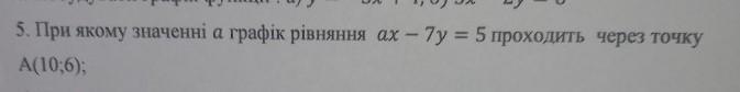 5. При якому значенні а графік рівняння ax - 7y = 5 проходить через точку A(10; 6)