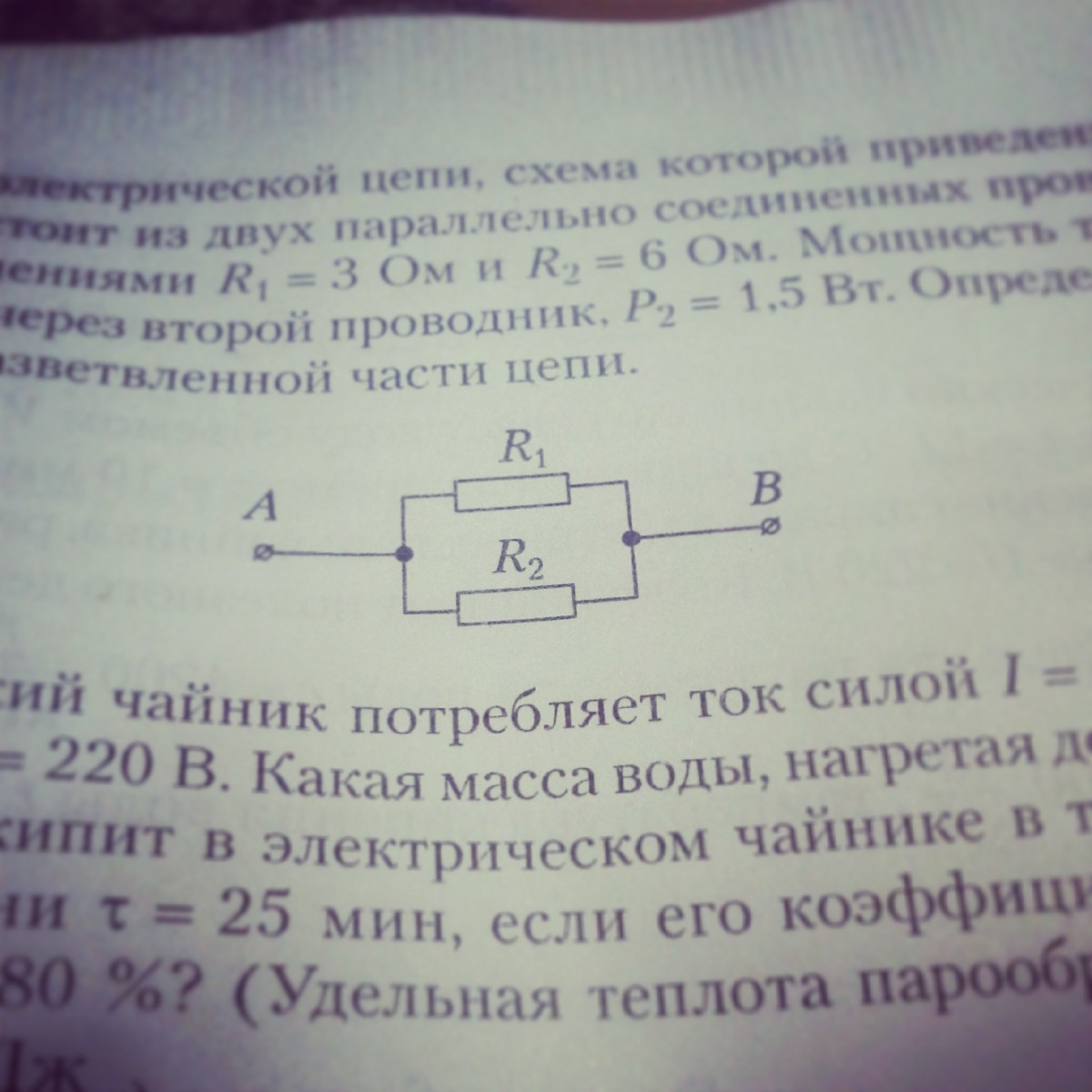 участок электрической цепи состоит из двух параллельно соединенных проводников сопротивлениями R1=3Ом и R2=6 Ом.Мощность тока,проходящего через второй проводник P2=1,5 Вт.Определите силу тока в неразвлетвлённой части цепи