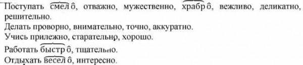 Упражнение 313. Составьте словосочетания из глаголов и наречий и запишите их. 1) Поступать (смелый, отважный, храбрый, вежливый, муже- ственный). 2) Делать (проворный, внимательный, точный, аккуратный). 3) Учись (прилежный, старательный, хороший). 4) Работать (быстрый, тщательный). 5) Отдыхать (весёлый, интересный). Укажите в наречиях, образованных от выделенных прилагательных, корень и суффикс. быстрее пж