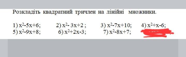 Во всех уравнениях корни квадратного трёхчлена легко найти по теореме Виета, a разложение будет иметь вид