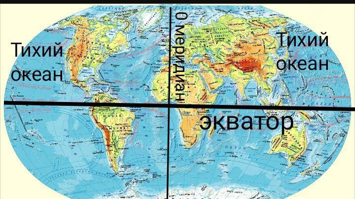 0 меридиан пересекает острова Великобритании, которые находятся к востоку от Тихого океана.
