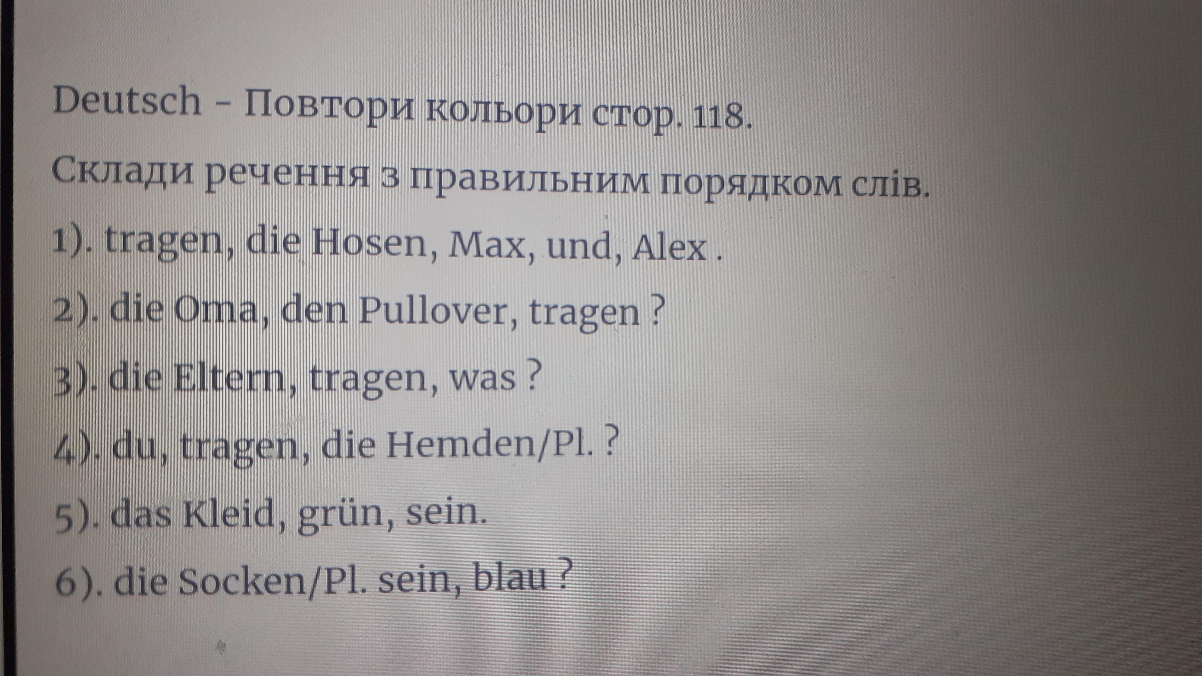 Допоможіть будь ласка/помогите пожалуйста для тех кто не знает укр. мову то там надо переставить слова в правильний порядок(Немецкий язык)(Німецка мова)