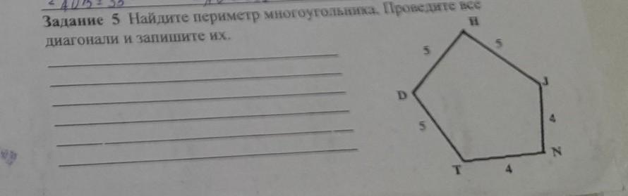 Диагонали: HN, HT, JT, JD, ND.