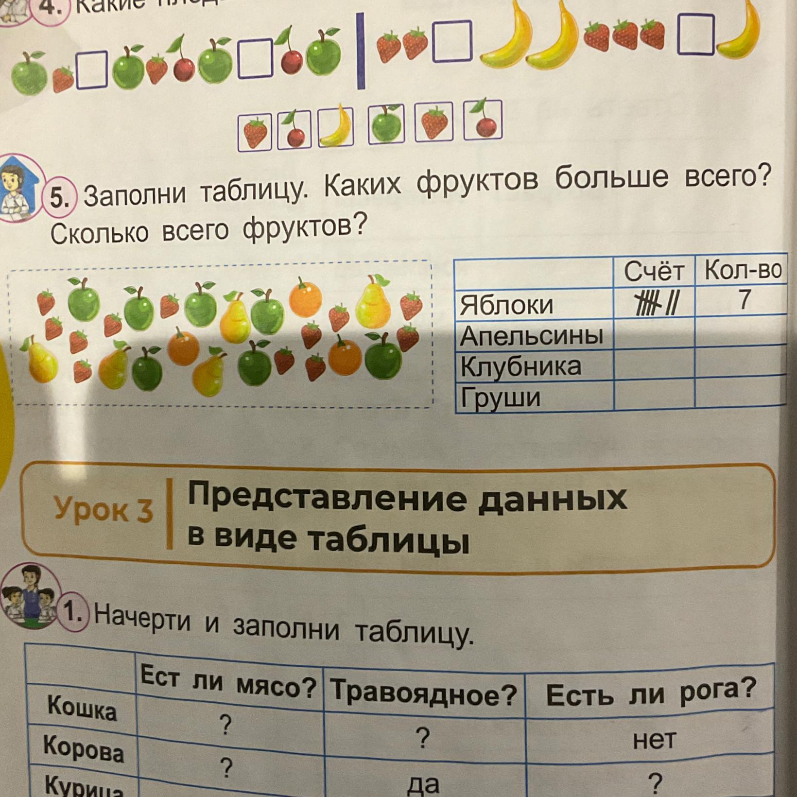 Само больше клубник их 12 потому что яблоки 7 апельсин 3 клубник 12 груши 5