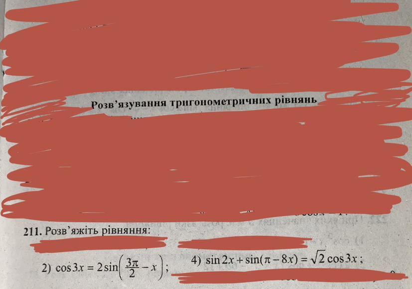 sin x – cos x = 0; 2sin x+cos x = sin2 2x; cos 4xcos 2x = cos 5x; tg 5x + tg 3x = 0