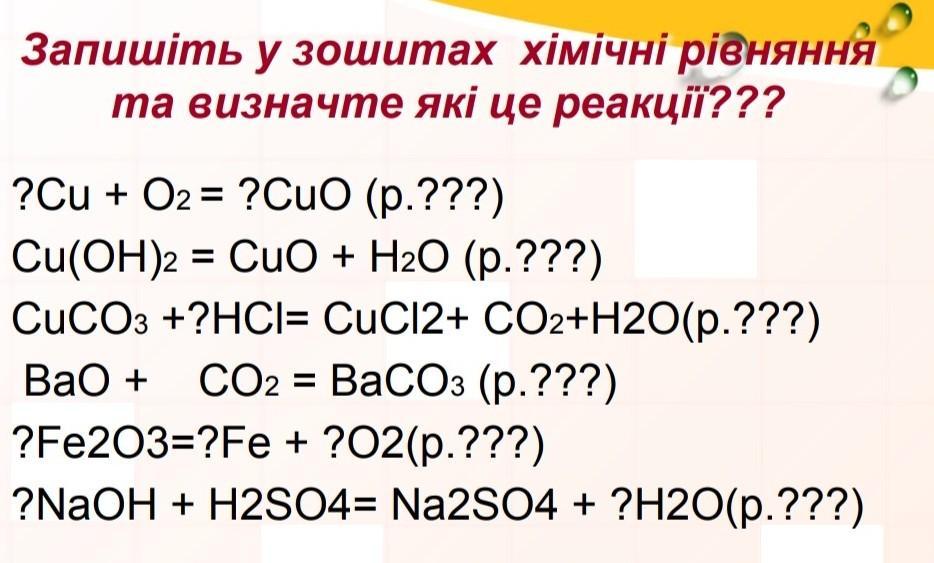 2Cu + O2 = 2CuO (р. з'єднання)