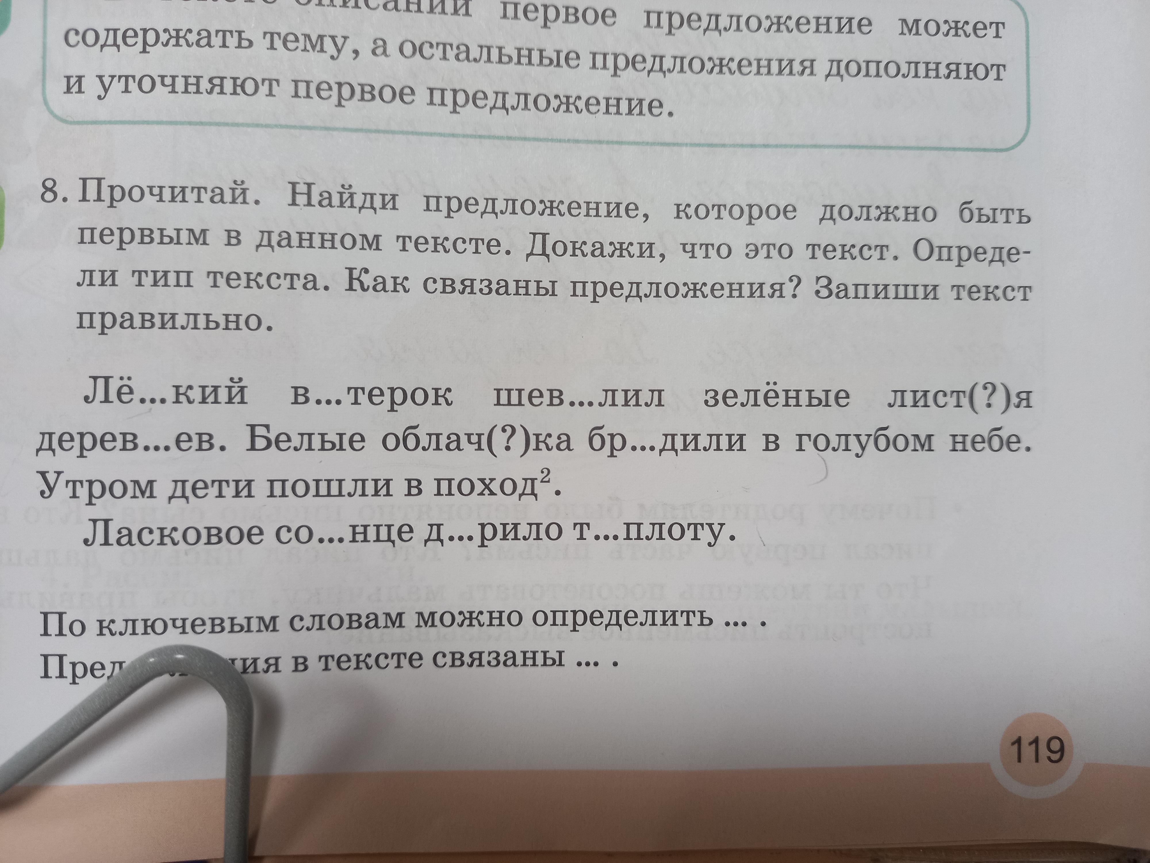 Прочитай.Найди предложение, которое должно быть первым в данном тексте.Докади,что это текст.Определи тип текста.Как связаны предложения?Запиши текст правильно.