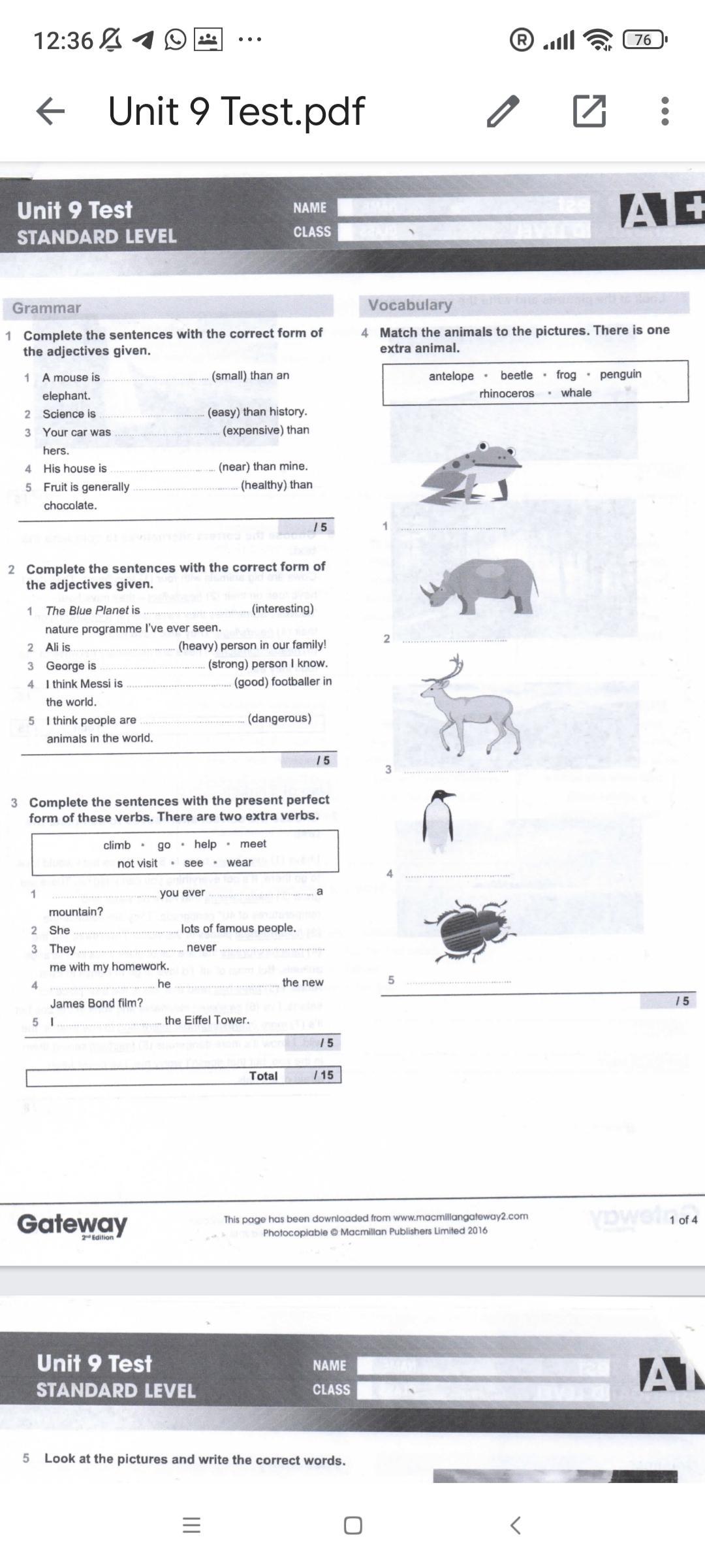 4.1. frog 2. rhinoceros 3. antelope 4.penguin 5.beetle