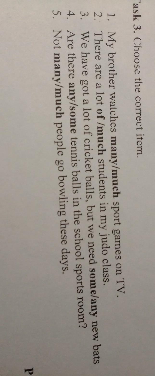 3. We have got a lot of cricket balls, but we need some/any new bats 4. Are there any/some tennis balls in the school sports room?