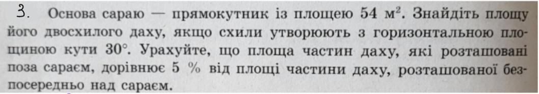 Площа прямокутника (основи сараю) дорівнює 54 м².