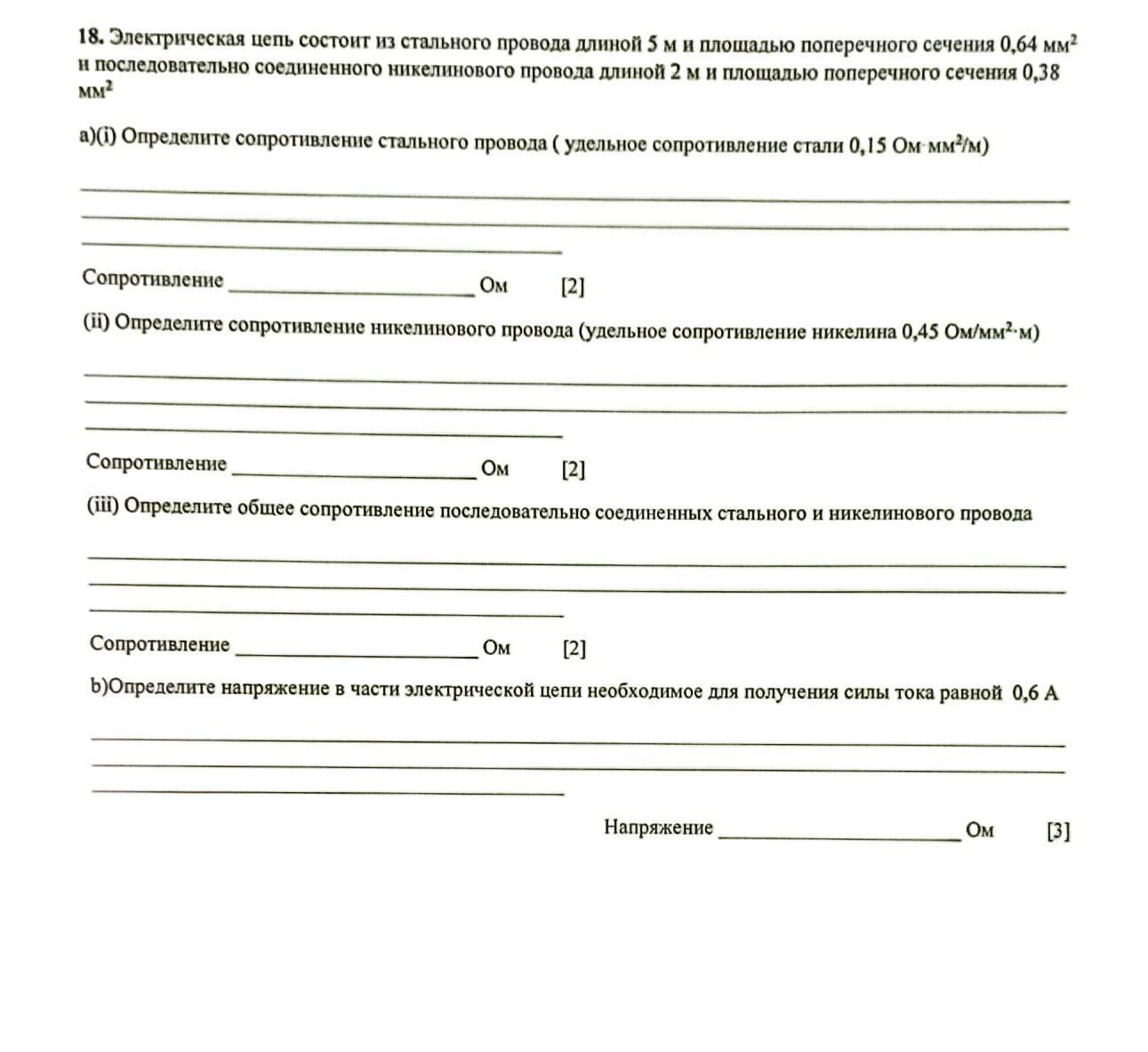 a)(i) Определите сопротивление стального провода ( удельное сопротивление стали 0,15 Ом мм2/м)