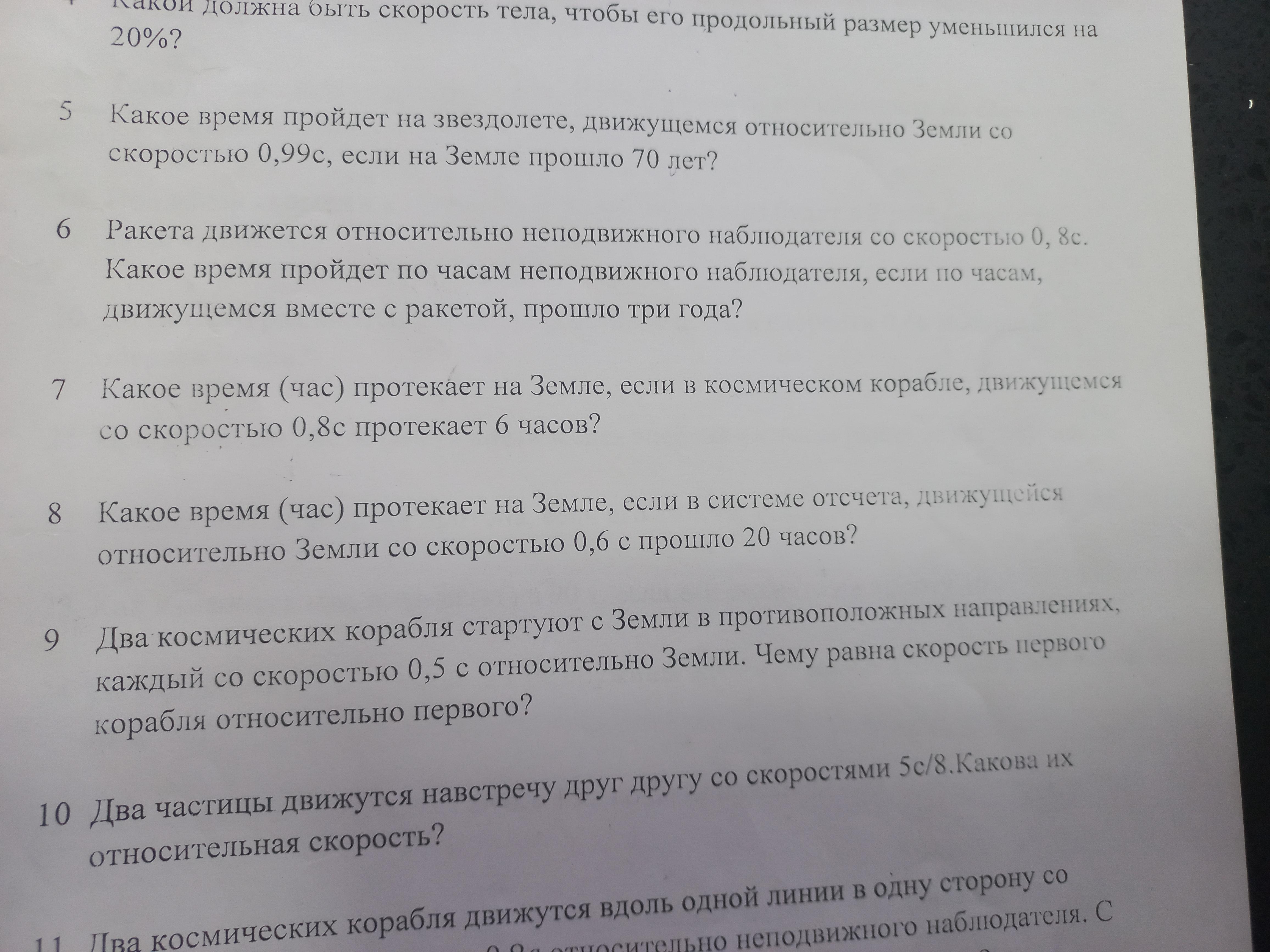 9) Относительную скорость кораблей можно найти по формуле: Vот = (V1 +V2)/(1 + V1*V2/C²) =