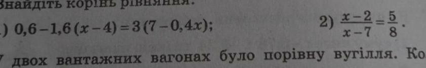 0,6 - 1,6(х - 4) = 3(7 - 0,4х)