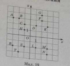 3. Користуючись малюнком 19, визначте точку, у яку при повороті навколо точки О на 90° проти годинникової стрілки переходить точка К.
