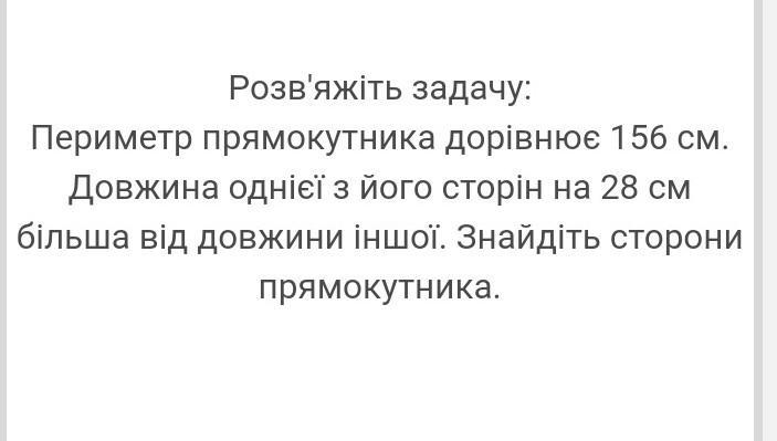 Позначимо довжину однієї сторони прямокутника через x, тоді довжина другої сторони буде x - 28.