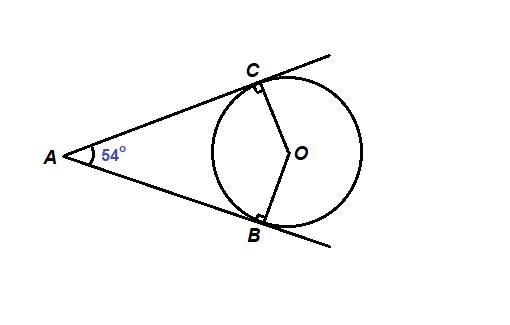 угол между двумя касательными равен 54° определить центральный угол образованный двумя радиусами, провеленным к точке касания.