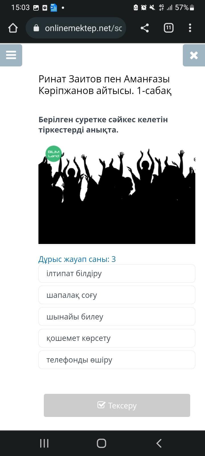 Шынайы билеу, шапалақ соғу, телефонды өшіру.