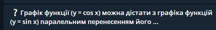 график функции у=cosx можно получить параллельным переносом на π/2 влево из графика функции у=sinx.