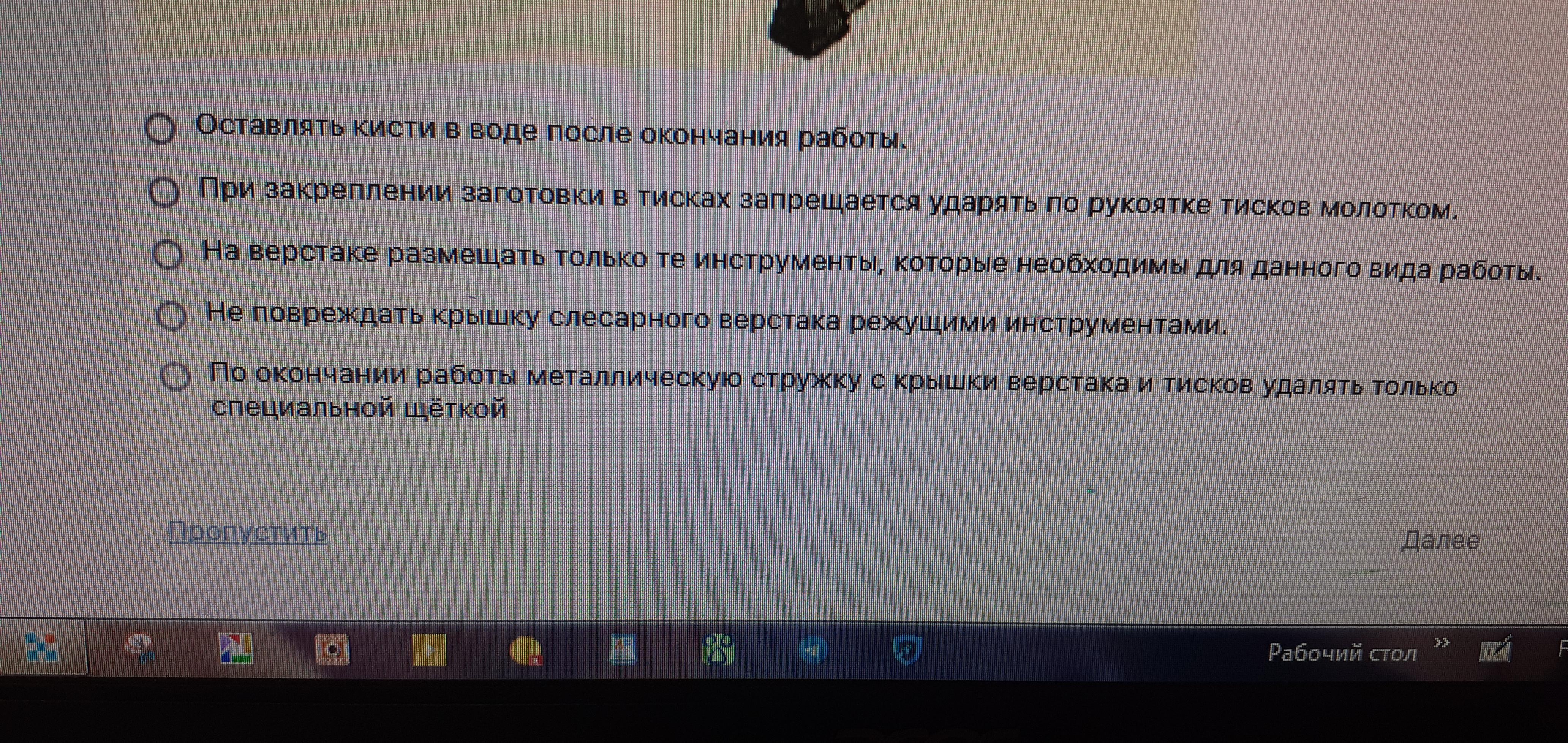 Как можно быстрее.ДАМ 30.Выбери лишний пункт в правилах безопасности при работе на слесарном станке (при ручной работе металлических изделий)