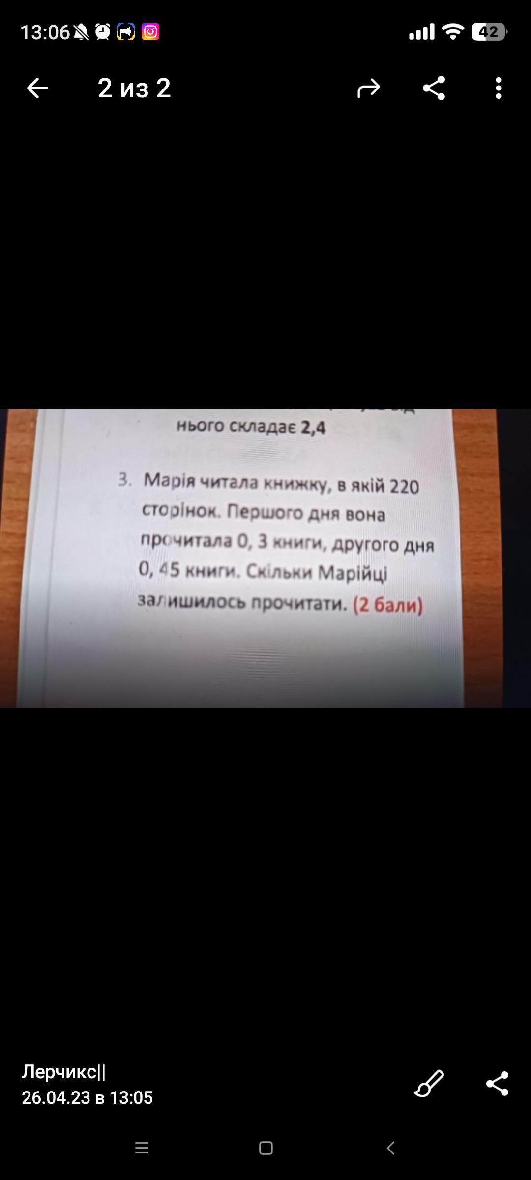 1) 0,3 + 0,45 = 0,75 (часть) - всей книги прочитала Марийка за два дня